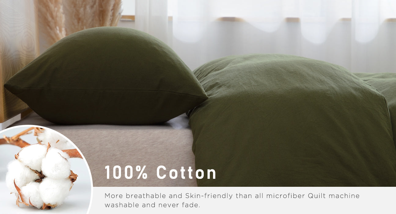 - 100% washed cotton. Breathable and moisture absorbing. The cloth is treated with a special process, which makes it softer and more comfortable.